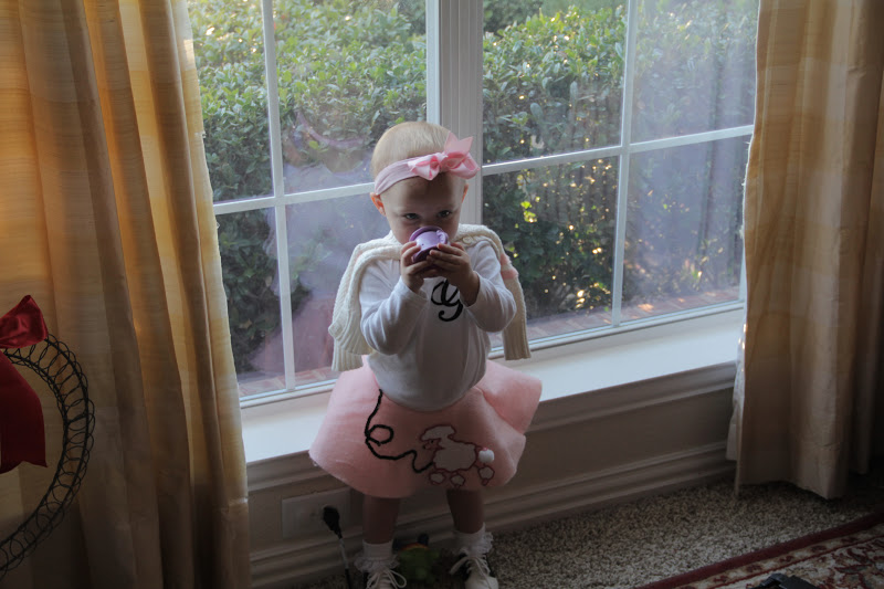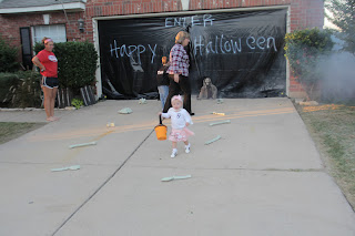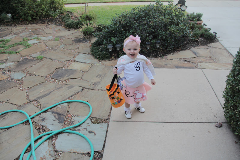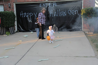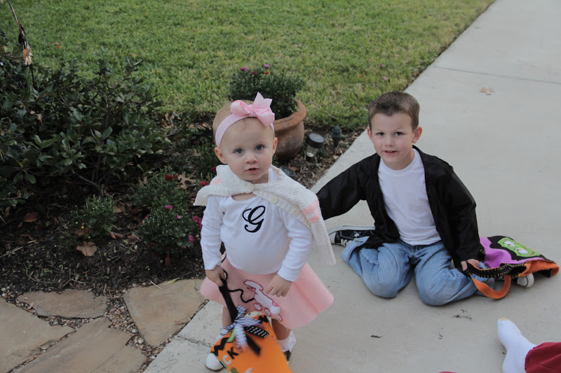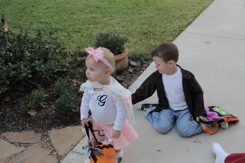 On the Monday before Halloween, we went to our friend Ella's Halloween party. Rhett wanted to dress as a football player, so we pulled this costume out of his closet. GG already had the cheerleader uniform, so it worked out great!